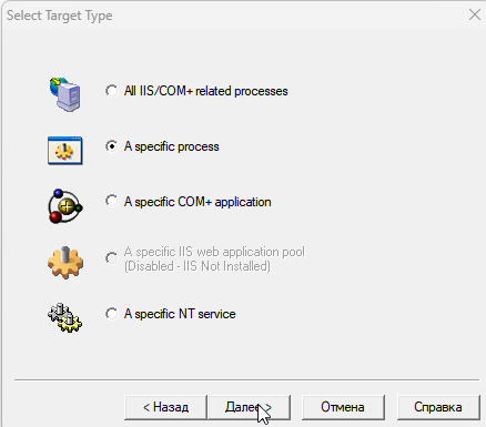 3. Выберите пункт "A specific process" и нажмите кнопку "Далее".