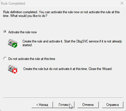7. Выберите пункт "Activate the rule now" и нажмите кнопку "Готово".