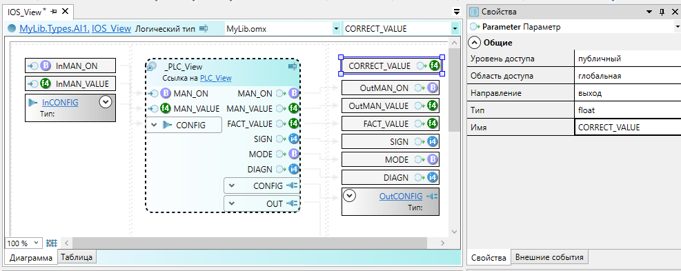 2. Выделите добавленный параметр и в окне "Свойства" укажите имя "CORRECT_VALUE" и направление "выход".