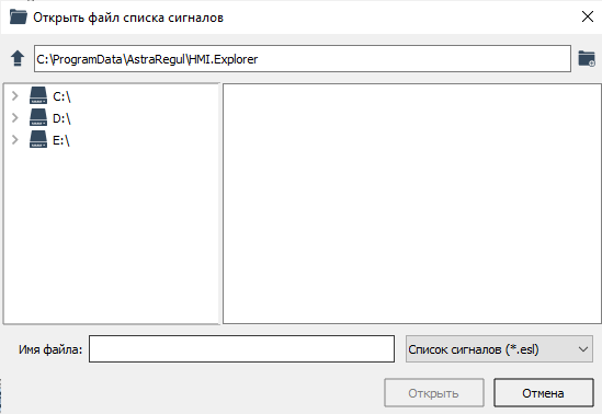 3.12.2.2.1.3. Загрузить список сигналов из файла Чтобы восстановить список сигналов из файла, нажмите Загрузить список сигналов из файла. Откроется диалоговое окно, где можно будет выбрать нужный файл.