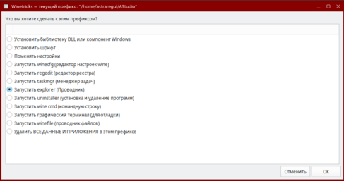 Необходимо запускать Astra.AStudio только через WINEPREFIX!