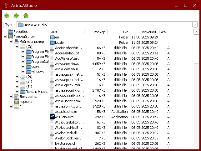5. Перейдите в каталог с установленным компонентом Astra.AStdio.