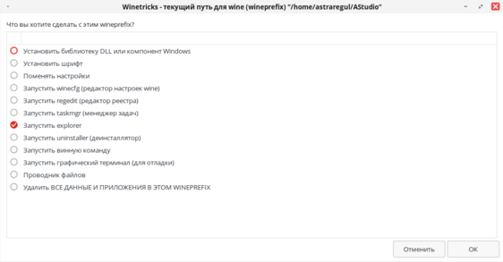 Необходимо запускать Astra.AStudio только через WINEPREFIX!