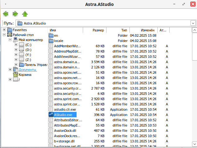 5. Перейдите в каталог с установленным компонентом Astra.AStdio.