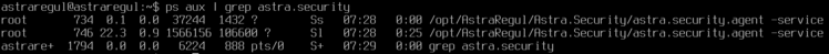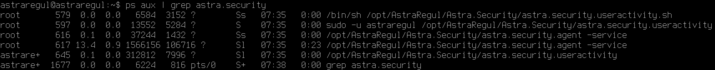 После этого стоит перезапустить систему. Проверьте список запущенных сервисов с помощью команды "ps aux". Сервис "astra.security.useractivity.service" будет запущен от имени указанного пользователя.