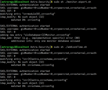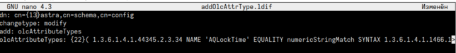14. Откройте файл "addOlcAttrType.ldif" и замените в значение атрибута "dn: cn={x}astra,cn=schema,cn=config" значение "x" на значение, полученное в п.12.