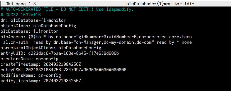 nano olcDatabase={x}monitor.ldif