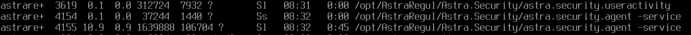 9. Проверьте список запущенных сервисов с помощью команды "ps aux". Сервисы "astra.security.service" и "astra.security.useractivity.service" будут запущены от имени указанного пользователя.