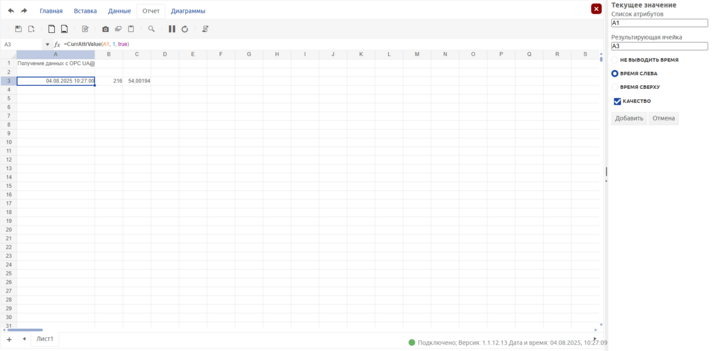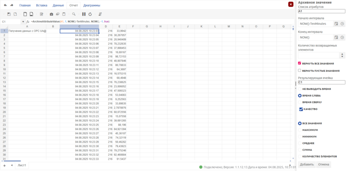 Если установлен флаг Вернуть все значения, в формуле будут рассчитываться все значения за установленный интервал времени.